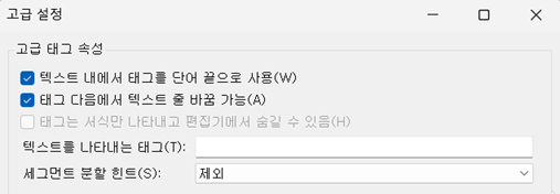태그 정의 규칙에서 <br> 같은 것 입력하고, 고급 설정에서,